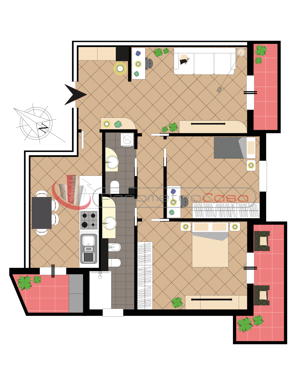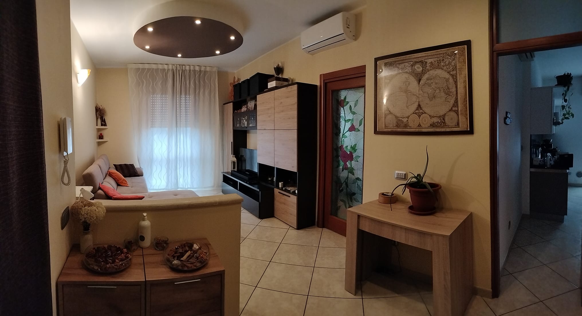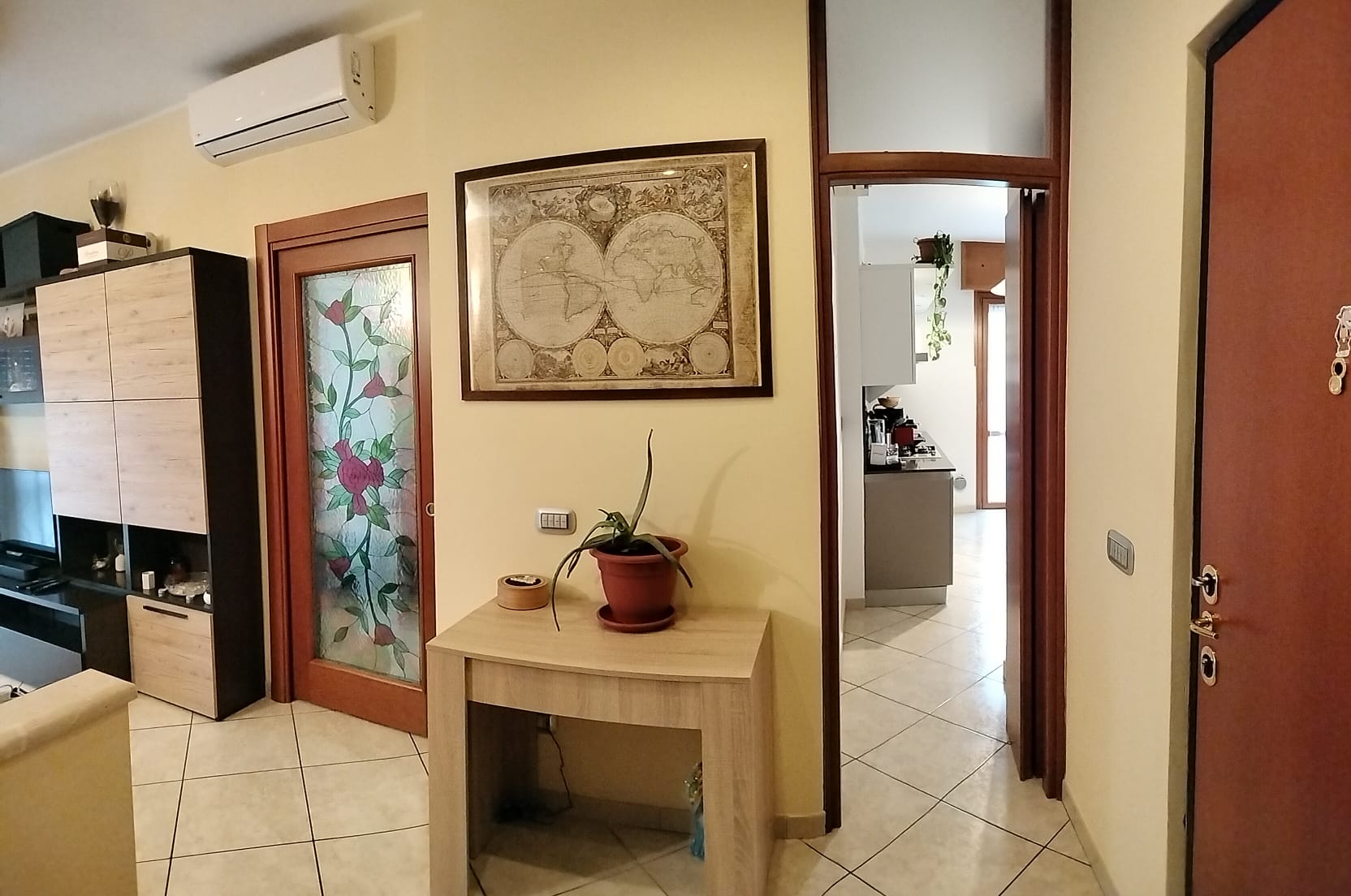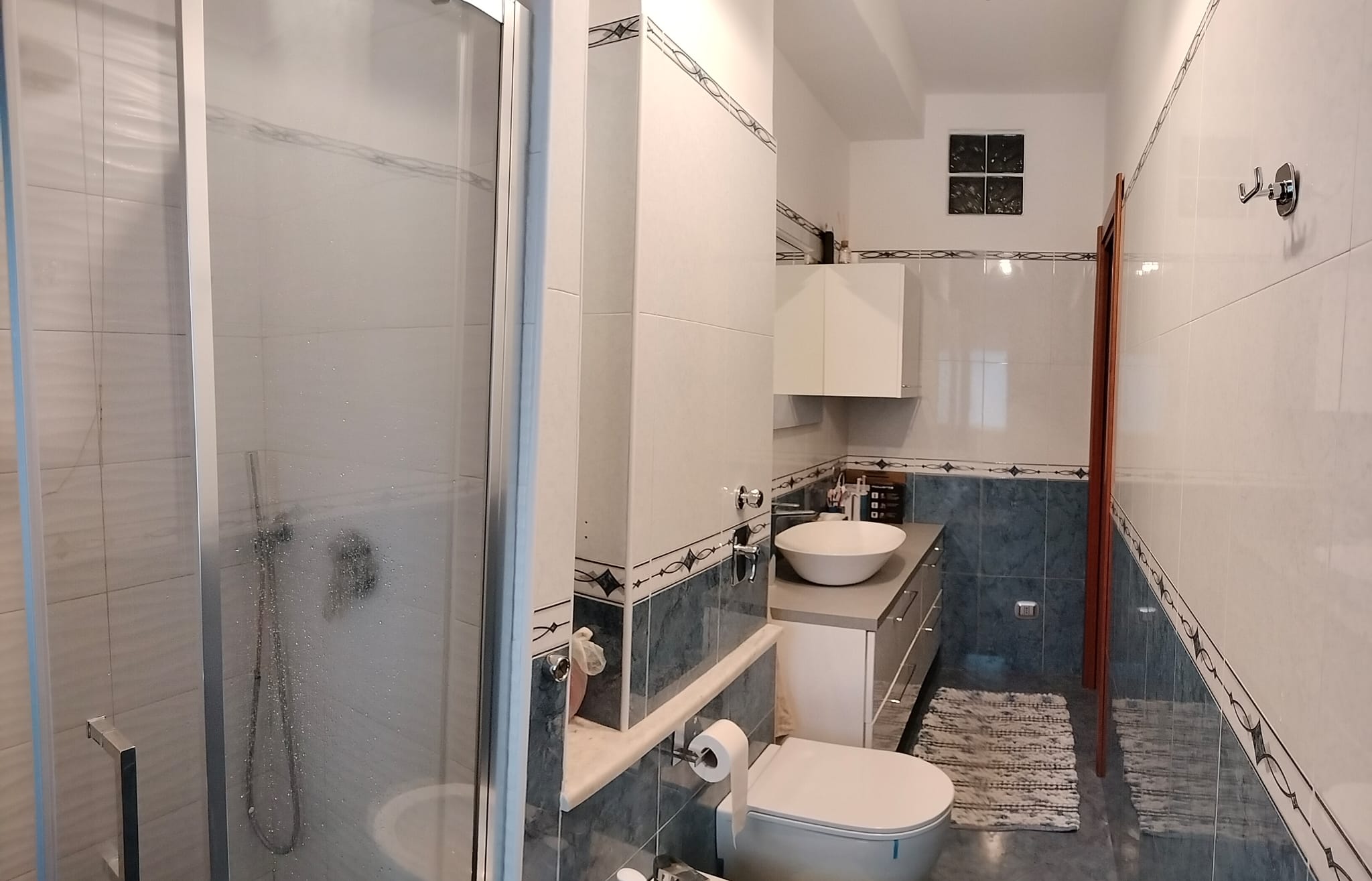 L’ingresso introduce in una sala accogliente e ben organizzata, che si apre su una spaziosa cucina abitabile, luminosa e ariosa, ideale per pranzi e cene in famiglia o con amici. Un comodo disimpegno conduce alla zona notte, composta da due ampie camere da letto, entrambe ben illuminate e facilmente arredabili, e da due bagni moderni, uno dei quali finestrato, entrambi rifiniti con rivestimenti di pregio.