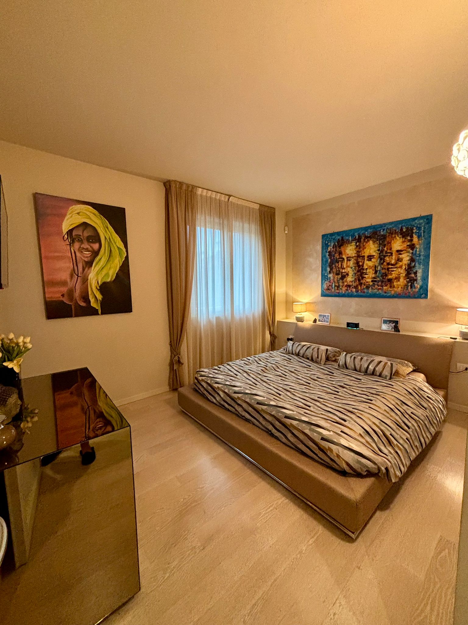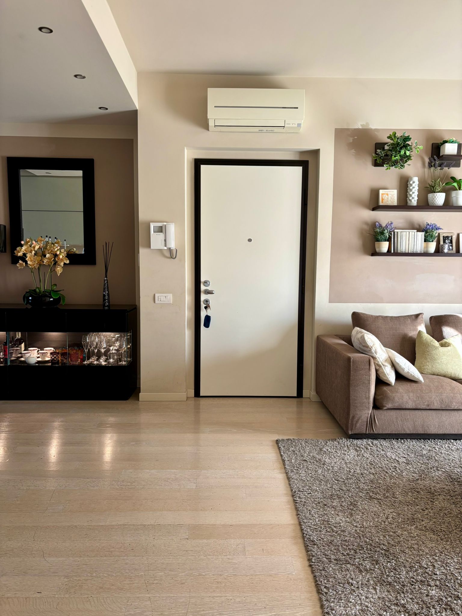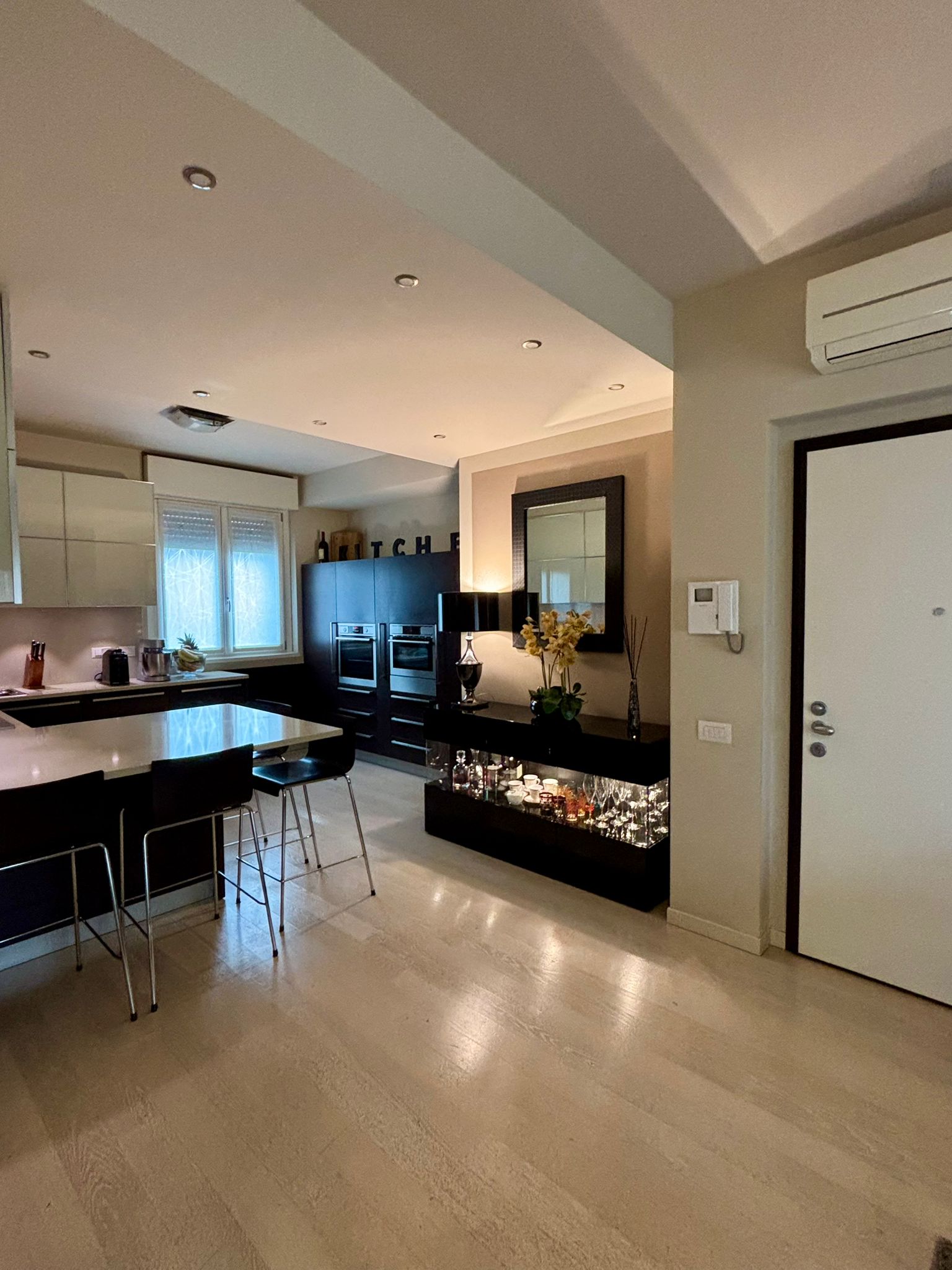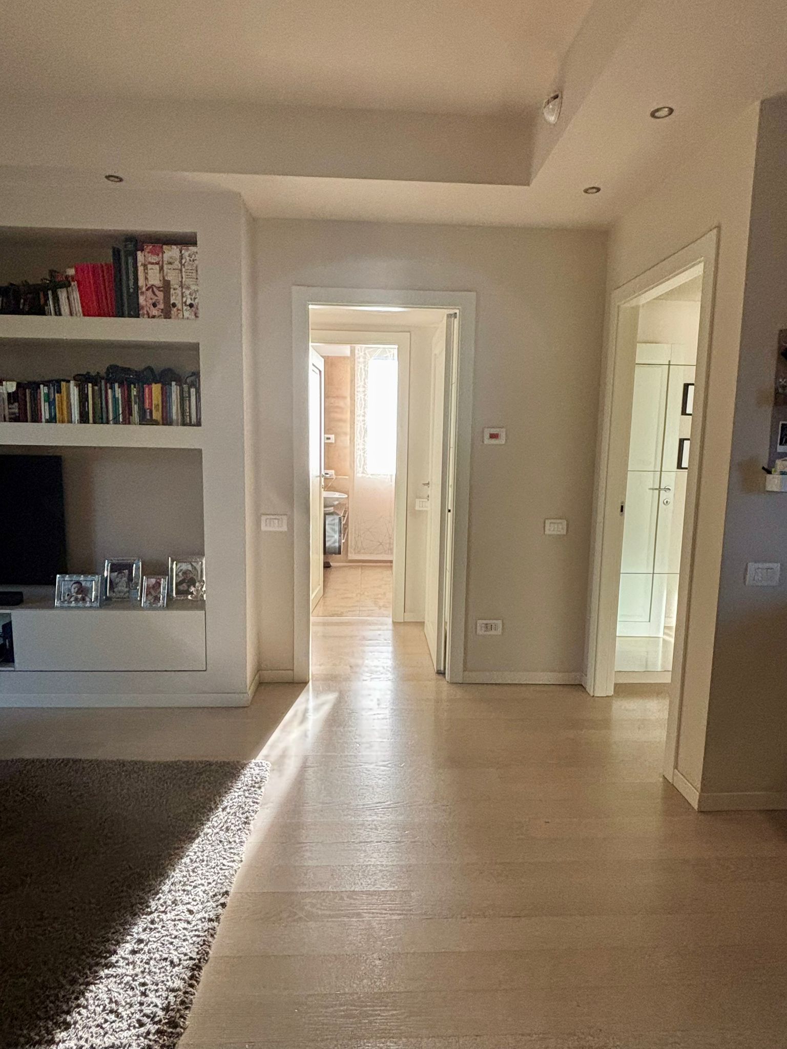 L’immobile è impreziosito da finiture di livello superiore: parquet posato uniformemente in tutta la casa, serramenti in legno con doppi vetri che garantiscono ottimo isolamento termoacustico, tapparelle elettriche in alluminio, impianto di aria condizionata già installato e sistema d’allarme sia volumetrico sia perimetrale, ideali per assicurare il massimo della sicurezza. Il riscaldamento è centralizzato, garantendo un’elevata efficienza e un comfort costante durante la stagione invernale. Completano la proprietà una comoda cantina al piano interrato e la possibilità di acquistare un box, elemento particolarmente prezioso nella zona. L’appartamento rappresenta una soluzione ideale per chi desidera un’abitazione recente, ampia, ben rifinita e situata in una posizione comoda e strategica.