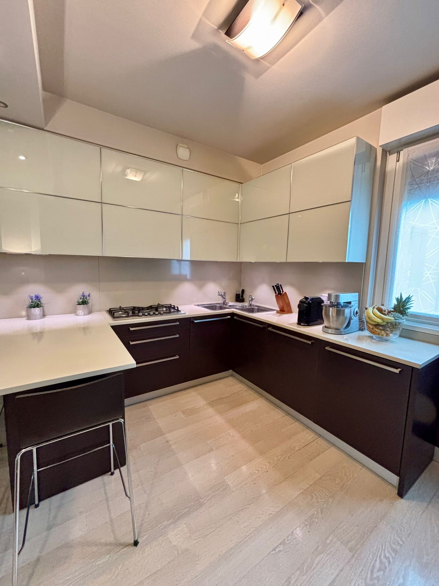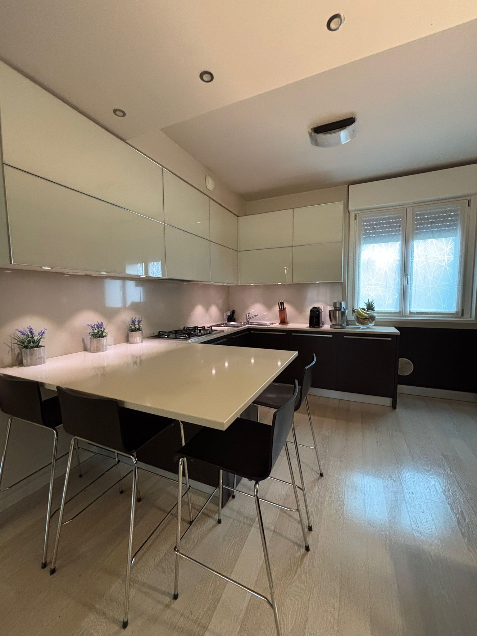 In una tranquilla e servita zona semicentrale di Cusano Milanino, all’interno di una moderna palazzina di recente costruzione composta da soli tre piani, si propone un raffinato quadrilocale di mq. 120 posto al primo piano, caratterizzato da una preziosa quadrupla esposizione (nord, sud, est, ovest) che garantisce luce naturale in ogni momento della giornata e un’ottima aerazione degli ambienti. L’ingresso si apre su un’ampia zona living dall’atmosfera calda e accogliente, concepita per offrire massima funzionalità e comfort; dal soggiorno si accede direttamente a un terrazzo di circa mq. 8, ideale per pranzi all’aperto, letture rilassanti o semplicemente per godersi un piacevole affaccio esterno. La cucina a vista, ampia e ben organizzata, è pensata per chi ama vivere gli spazi in modo conviviale e dispone di superfici generose che la rendono perfetta anche per famiglie numerose.